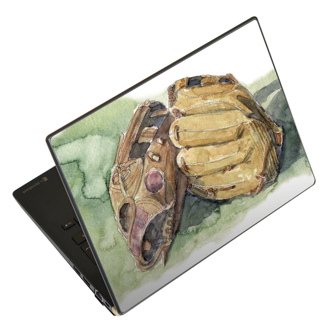 ノートパソコン スキンシール 17インチまで対応 汎用ステッカー 2枚セット LAVIE用 FMV用 LIFEBOOK用 Dynabook用 Lenovo用 Thinkbook用 IdeaPad用 HP用 Pavillon用 ENVY用 Elite用 Dell用 Vostro用 Inspiron用 VAIO用 008065 イラスト 水彩 グローブ 野球