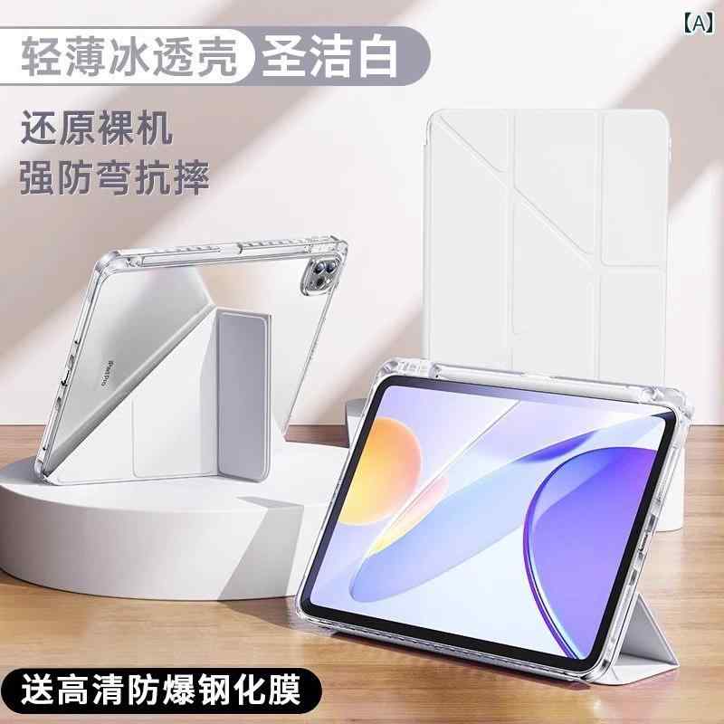 iPadケース Pro 保護 スロット タブレット ポータブル 携帯 曲がり防止 破損防止 透明 ペン スロット ホワイト グレー パープル