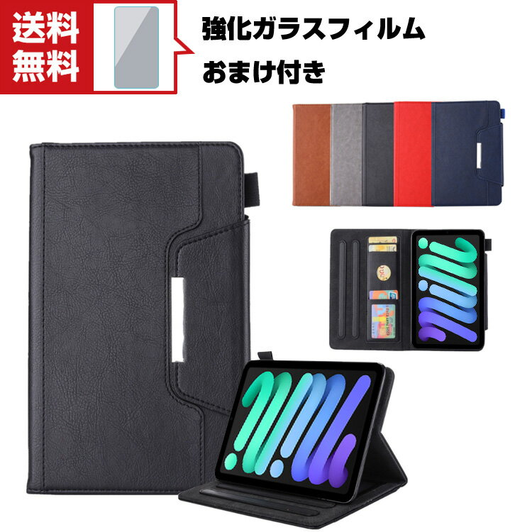 送料無料 Apple iPad mini 6 2021モデル 第6世代 タブレットケース おしゃれ CASE オートスリープ 手帳型カバー スタンド機能 ブック型 カッコいい 実用 カード収納 便利性の高い 人気 手帳型 レザー ブックカバー 強化ガラスフィルム おまけ付き
