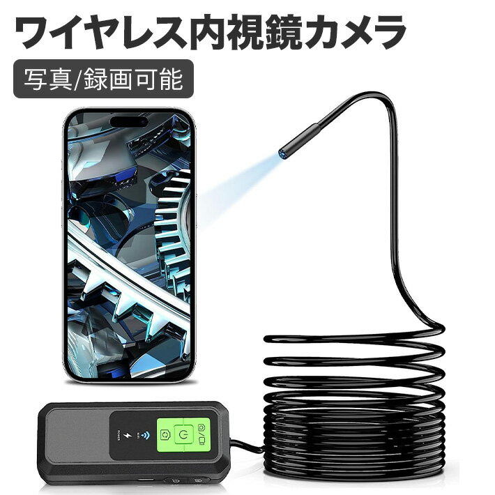 【7.9mm曲げ可能なカメラ】この工業用内視鏡は、高品質な7.9mmセミリジッドワイヤーを使用しています。ワイヤーは柔軟性があり、さまざまな状況に応じて曲げることができます。角度調整も容易です。一般的な用途としては、パイプの検査、下水道の詰まり解消、部屋の回路配線チェック、車のメンテナンス、洗濯機のメンテナンスなどに利用されます。【高画質デュアルレンズ】7mmレンズを搭載した高画質デュアルレンズのファイバースコープカメラは、他のデュアルレンズ製品よりも細く、広範囲な適用が可能です。サイドカメラに切り替えることで、視野の死角がなくなります。【HD検査カメラ】2.0MP内視鏡は、2560x1440、1920x1080、1280x720の調整可能な写真解像度で、MP4形式のクリアな近距離HDビデオとJPG形式の画像を撮影録画可能です。【7.9mm超薄型プローブ】十分に広い視野を備えたこのワイヤレス内視鏡のカメラは7.9mmで、非常に狭い空間でもターゲット位置に簡単に操作できます。時間と労力を大幅に節約します。最適な観察焦点距離: 2-10cm。【複数の付属品】内視鏡には、レンズ保護スリーブ、磁気スリーブ、フックスリーブ、サイドミラースリーブなど、使いやすい補助ツールが付属しています。【IP67防水】防水スネークケーブルと8つの調整可能なLEDライトを備えており、薄暗い場所や暗い場所、濡れた場所でも鮮明な画像を確保します。自動車検査、パイプ、壁、下水道、排水管、空調設備などに広く使用されています。【大容量バッテリー】このボアスコープには850mAhの大容量バッテリーが内蔵されており、フル充電後には約2.5時間の連続動作が可能です。内蔵USB充電式バッテリーなので、充電しながら使用することもできます。【パッケージ内容】・5mのケーブルが付属した内視鏡・USB充電ケーブル・アクセサリーキット(マグネット+フック+鏡)・説明書(英語)・簡易日本語接続説明書