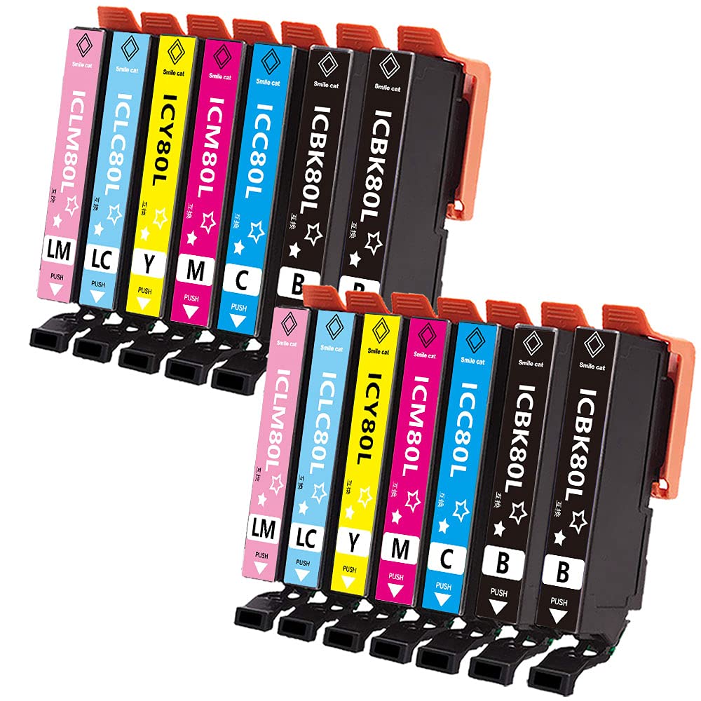 【送料無料】【Smile Cat】エプソン用 IC6CL80L インクカートリッジ(6色セットx2 +黒2本 合計14本セット) とうもろこし インク 増量タイプ 『互換インク/大容量/残量表示/個包装』対応機種: エプソン EP-982A3 EP-707A EP-708A EP-777A EP-807AB EP-807AR EP-807AW EP