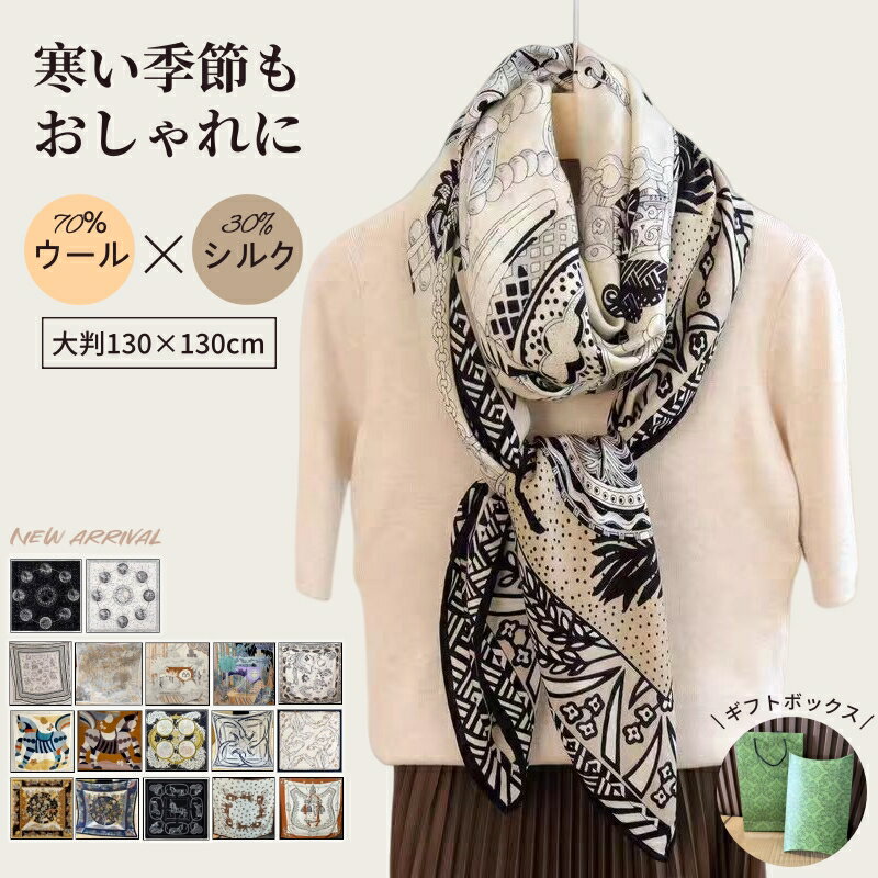 【商品情報】 サイズ:130cm×130cm 素材:ウール70% + シルク30% タイプ:ギフトボックス付き/ギフトボックスなし 【春夏秋冬オールシーズン使える!万能ビッグサイズ大判ストール】 おしゃれなペイズリー柄バンダナ風デザイン。130cm×130cmの超大判サイズで、身体をしっかり包み込みます。 高級素材ウール×シルク混紡生地を使用し、薄手なのに暖かく、肌触りはふんわり滑らか。 首元に巻いてスカーフやマフラーとして、また肩にかけてショールや羽織りとしても活躍。 コンパクトに折りたためるので、バッグに入れて持ち歩きにも便利です。旅行や外出、冷房対策にもおすすめ。 秋冬のダークトーンコーデの差し色や、春夏の冷房対策にもぴったりな上品アイテムです。 【おすすめポイント】 ・シーズンレスで使える大判ストール ・軽量&持ち運び便利、旅行や通勤に◎ ・カシミヤ70%+シルク30%、高級感ある薄手素材 ・冷房対策・日よけ対策・防寒対策すべてに対応 ・ギフトにも最適!母の日・誕生日・記念日のプレゼントに ・ユニセックスデザインでメンズにもレディースにもおすすめ 【ご注意ください】 ●実寸はメジャー採寸の為、若干の誤差が生じる場合があります。 ●色合いはモニター環境により若干の誤差が出ます。 ●品質上は問題ありません。返品交換の対象外とさせていただいております。ご理解いただいた上で、ご購入下さい。 ●お急ぎの方は、期間に余裕をもってのご注文をお願い致します。 ●検索キーワードは商品の説明ではございません。 【送料について】 本土地域は送料無料です。 沖縄・離島への追加送料:2,000円 関連検索キーワード:母の日 ギフト/母の日 プレゼント/感謝の気持ちを込めて/実用的ギフト/お母さんが喜ぶ贈り物/誕生日 プレゼント/記念日 ギフト/プレゼントにおすすめ/母の日 ファッション小物/大判スカーフ/正方形スカーフ/大判ストール/エレガントスカーフ/上品スカーフ/フォーマルスカーフ/春夏スカーフ/秋冬兼用スカーフ/ふんわりストール/大人可愛いスカーフ/シルクスカーフ/カシミヤシルク/高級スカーフ/上質スカーフ/上品ストール/高級ストール/ナチュラルカラー スカーフ/バイカラー スカーフ/モノトーン スカーフ/花柄スカーフ/ペイズリー柄 スカーフ/フラワー柄 スカーフ/シンプルエレガント スカーフ/落ち着いたデザイン スカーフ/大人 スカーフ/レディース スカーフ/メンズにもおすすめ/おしゃれスカーフ/旅行 スカーフ/冷房対策 ストール/日よけ ストール/通勤 通学 スカーフ/万能スカーフ/シーズンレス ストール/スカーフ /お買い物マラソン/5と0の日/ワンダフルデー/楽天スーパーセール/スーパーSALE 対象/タイムセールおすすめ商品