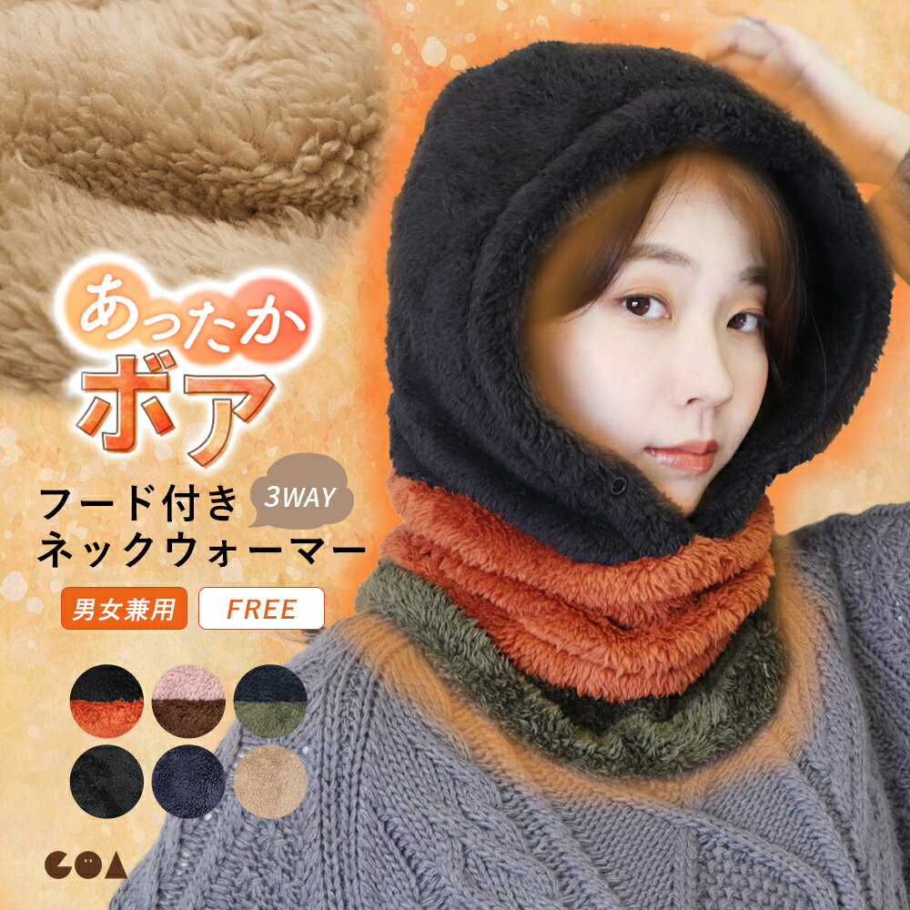 \全品2点以上5%OFFクーポン/27日まで◆フード付き ネックウォーマー ボア 冬 暖かい フェイスガード スヌード マフラー もこもこ 無地 シンプル かわいい 3way 防寒 あったかい メンズ レディース 男女兼用 アウトドア キャンプ 通勤 通学 自転車 gt *00