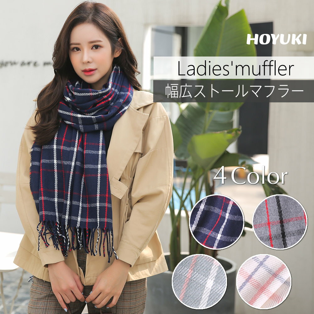 マフラー ストール 幅広 レディース 大きい チェック 学生 冬 暖かい 幅広マフラー 秋 ネイビー グレー ホワイト 選べる4色 幅広ストール ショール 防寒 タータンチェック グレンチェック ネックウォーマー 秋冬 女性 メンズ 男性 大判ストール かわいい