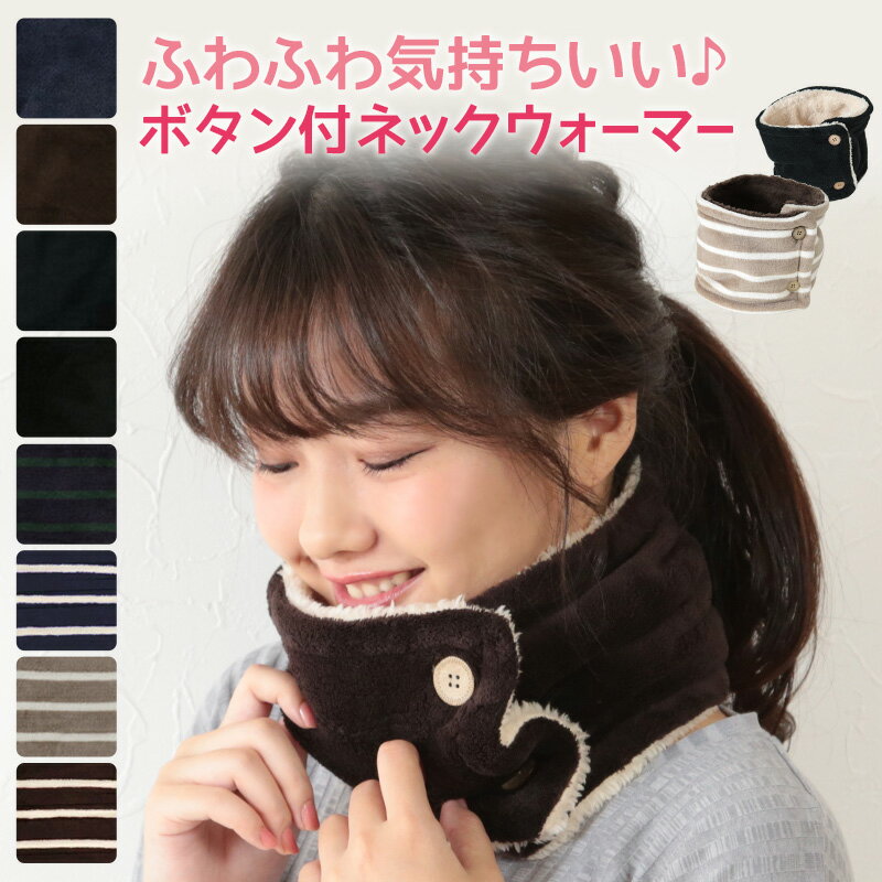【11/25は抽選で最大100%Pバック】ネックウォーマー ボタン ボア 冬 レディース おしゃれ 防寒 フリーサイズ ボーダー柄 無地