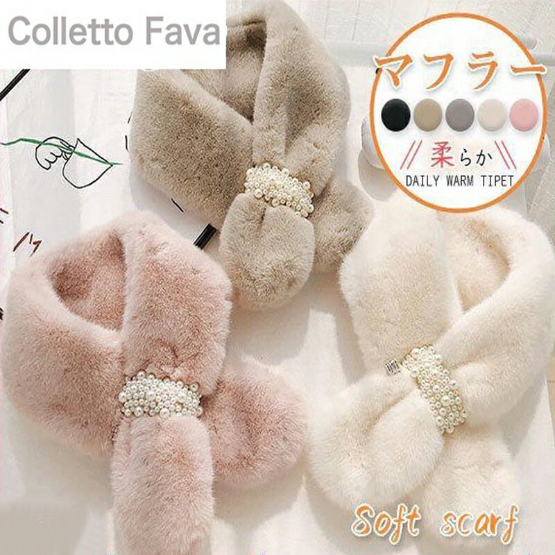 ファーマフラー デザイン レディース かわいい パールアクセサリー付き 暖かい 軽量 肌触り柔らか 大判 80×10cm マフラー ストール ネックウォーマー 上品 エレガント 防寒 黒 白ブラック ホワイト ピンク グレー ベージュ ブラウン おしゃれ 韓国ファッション 秋 冬 [K](T)