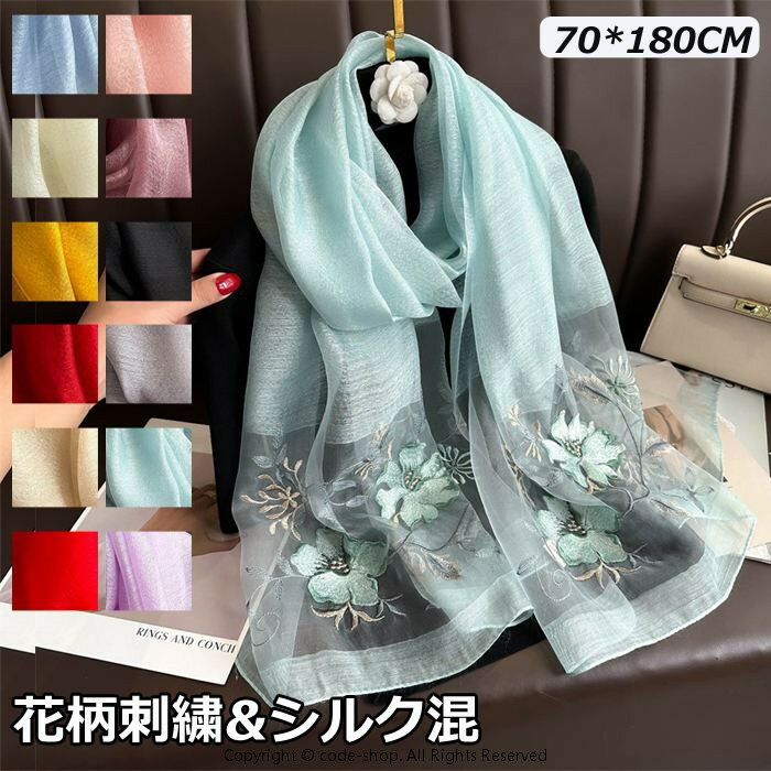 敬老の日 クリスマス プレゼント 母の日 ギフト 花柄 刺繍 マフラー おしゃれ シルク 春 夏 秋 薄手 スカーフ ストール 大判 巻物 ショール 肩掛け 孫から 80代 祖母 日焼け止め UVカット UV 冷房対策 紫外線対策 羽織 お誕生日 ギフトボックス