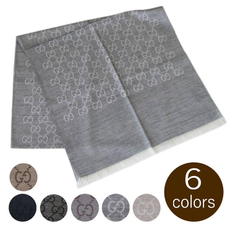 ワンダフルデー最大5000円クーポン★【刺しゅう可有料】 グッチ GUCCI ストール マフラー メンズ レディース 男女兼用 GG柄 全6色 ウール70% シルク30% 165904 3G646 【スペシャルラッピング1100円(別売り)】