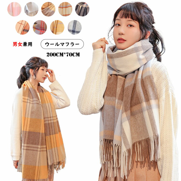 レディース マフラー ウール メンズ ウールストール 大判ストール チェック柄 ペアルック ペアマフラー 秋冬 厚手 防寒 女性 男性 男女兼用 シンプル あったか 秋冬コーディネート 20代 30代 40代 50代 彼女 彼氏 記念日 誕生日プレゼント クリスマス ギフト 200*70cm