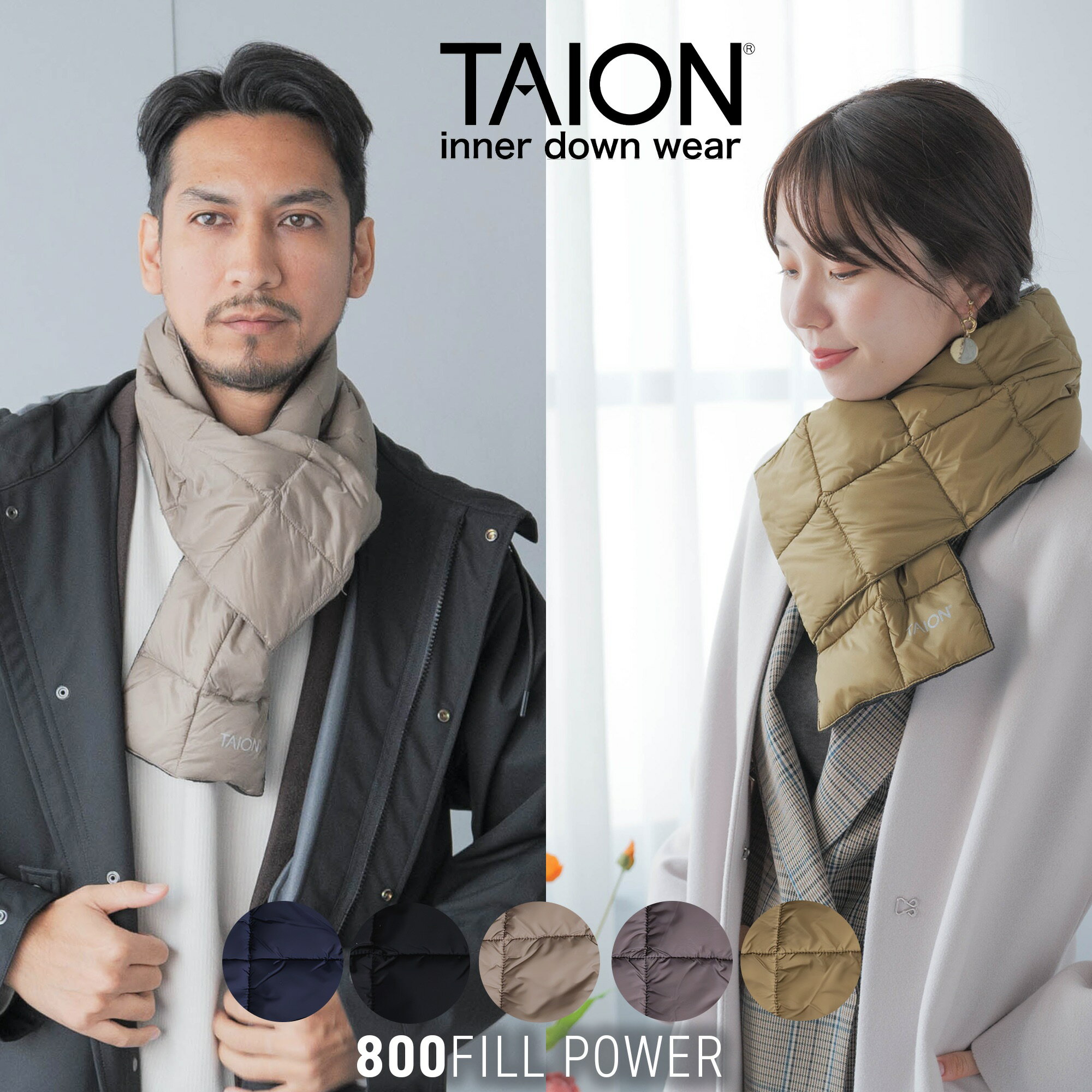 TAION-201A ベーシック ダウンマフラー メンズ レディース 男女兼用 冬 マフラー 800フィルパワー 防寒 通勤 通学 20代 30代 40代 50代 ビジネス カジュアル タイオン 体温 フリース素材 ベージュ カーキ グレー ネイビー ブラック プレゼント ギフト クリスマス 贈り物
