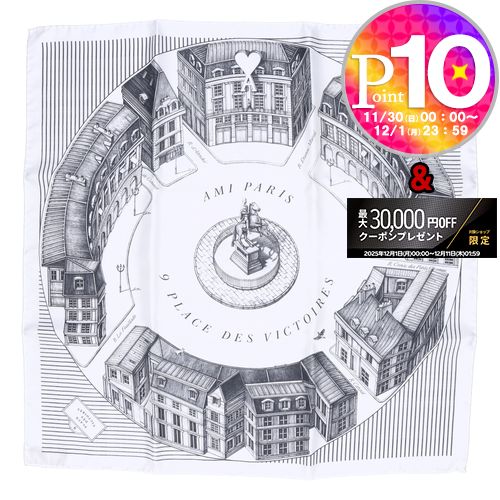 【30日0時〜48h限定ポイント10倍】 アミパリス AMI PARIS スカーフ PLACE DES VICTOIRES USF103AW 0044 004 NOIR BLANC