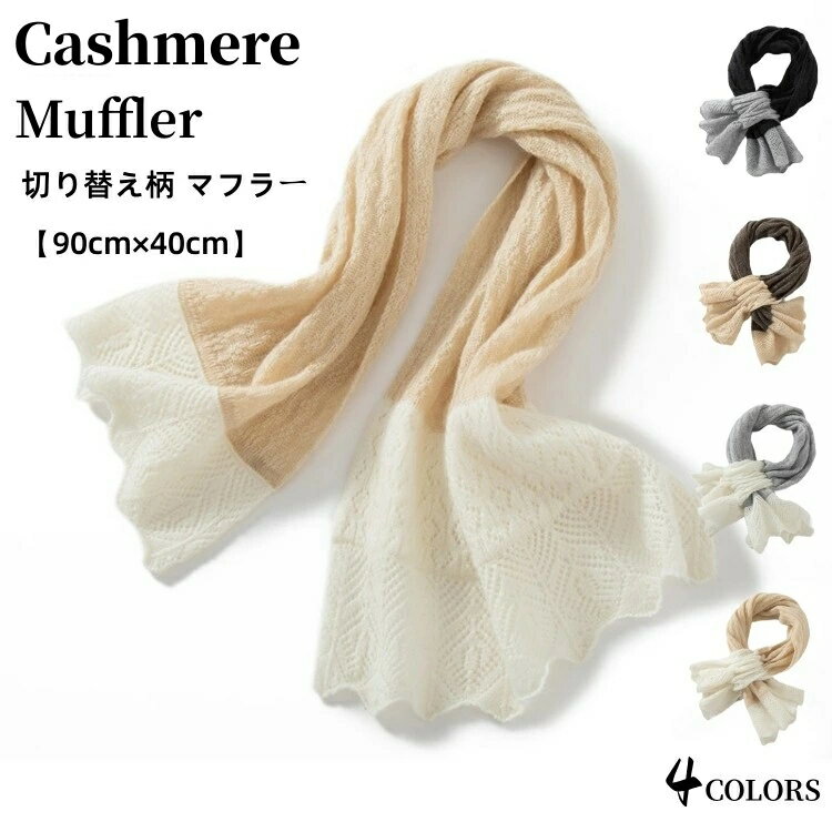 カシミヤ マフラー 【90cm×40cm】カシミア マフラー レディースマフラー 切り替え柄 透かし編み デザイン ネックウォーマー 冬 厚手 カジュアル 防寒 保温 小物 妻 女性 女友達 gift 誕生日 記念日 クリスマス 実用的 ギフト プレゼント 贈り物 20代 30代 40代 50代