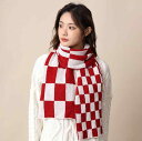 マフラー ストール レディース 秋冬 韓国 チェック柄 ニット 幾何学模様 暖か ポリエステル