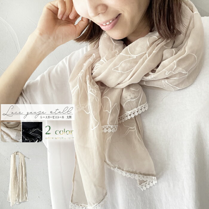 レース ストール 春 春夏 母の日 ガーゼ 大判 UVカット 夏 薄手 レディース フリンジ 春夏 秋冬 洗える 総柄 ストール巻き方 UV対策 ブラック 手洗い 送料無料 プレゼント 結婚式 クリップ 白 黒