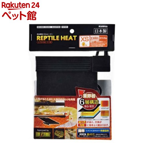 お店TOP>小動物・鳥・は虫類・昆虫>は虫類>エキゾテラ レプタイルヒート XS (1個)【エキゾテラ レプタイルヒート XSの商品詳細】●太陽があたためた大地のぬくもりを再現●耐久性が高く、全体が均等に効率よく暖まります●簡単コンセントに差すだけで快適温度【使用方法】・本製品には温度を下げる能力はありません・本製品はケージ内の一部分を補助的に保温するヒーターです。ケージ内全体を保温する場合は、部屋全体を暖めてください。・本製品はケージ内では使用できません。必ず、ケージの外に設置してください・本製品の設定温度はヒーター上面の温度です。飼育環境に応じて設置位置を温度計で確認し、ご使用ください。・ケージや設置場所の材質によっては、ヒーターにより暖まった部分が、変色や変形する場合があります。・床材を厚く敷くと、ヒーターの温度が床材の表面まで伝わらない場合があります。床材表面の温度を確認しながら床材の厚みを調整してください。 【エキゾテラ レプタイルヒート XSの原材料】・本体:PTC発熱体、PET、PP・ケース:PP【規格概要】・ヒーター部サイズ:約幅12.0*奥行き13.0cm・適応ゲージの目安:幅20〜30cmのゲージ・設定温度:約45度(温度設定精度±5度)※ヒーター表面の温度です。ゲージ内の温度は条件により異なります。・日本製【注意事項】・本製品は爬虫類・両生類屋内飼育専用です。他の目的には使用しないでください・子供に操作・セットさせないでください。操作、セットさせる時は大人の監視のもとで行ってください・本製品は水中、屋外、多湿な場所では使用できません【ブランド】エキゾテラ【発売元、製造元、輸入元又は販売元】GEX(ジェックス)リニューアルに伴い、パッケージ・内容等予告なく変更する場合がございます。予めご了承ください。GEX(ジェックス)大阪府東大阪市今米1-14-5072-966-0054広告文責:楽天グループ株式会社電話:050-5306-1825[小動物・鳥・は虫類・昆虫/ブランド:エキゾテラ/]
