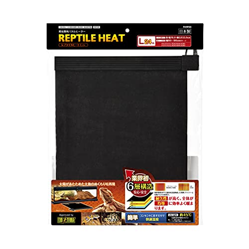 -/Lサイズ/4972547040565・パッケージ個数:1・自己温度制御式(PTC)パネルヒーター・商品モデル番号:4972547040565・原産国:日本・梱包サイズ:12 x 330 x 425 mm商品紹介 耐久性に優れ熱効率を高める6層構造の爬虫類用パネルヒーター。 特許取得のPTC塗料を含浸燃成した特殊ファイバーと均熱アルミの採用で、抜群の耐久性と暖房効率の向上を実現 本製品は住宅の床暖房として使用されている特殊ファイバー性のPTCを採用した自己温度制御式パネルヒーターです。 キズに強く高耐久を実現しました。また均熱アルミの採用でヒーター全面が均一に暖まるので効率よくケージ内を暖めます。 急激な温度変化が生じにくいパネルヒーターは変温動物の爬虫類にとってやさしい暖房です。 太陽があたためた大地のぬくもりを再現。 ・自己温度制御式(PTC)パネルヒーターとは・・・PTCとは温度が上昇すると抵抗が増え、電流を減少させる特性を持った物質のことです。レプタイルヒートは、このPTC特性を持つ「特殊導電性塗料」を採用しました。コンセントに差すだけで、ヒーター表面温度を一定(45度±5度)に保ち、爬虫類の快適温度を作ります。 ・使用方法簡単。コンセントに差すだけ。 ・コードの向きが気にならないリバーシブルタイプ採用で表裏どちら向きにも使用出来るのでコンセントに無理なく接続可能。 ・トラッキング防止プラグ使用 ・異常電流遮断機能(電流ヒューズ)採用 ヒーター本体最大外形サイズ:30.5×36.5cm(コード部を除く) 設定温度:45度(設定精度±5度)ヒーター表面の温度です。ケージ内の温度は諸条件により異なります。 消費電力:24W 適応ケージの目安:幅60-90cm 対応ケージ:グラステラリウム6030、グラステラリウム6045、グラステラリウム6060、グラステラリウム9030、グラステラリウム9045、グラステラリウム9060 使用方法 補助ヒーターとして、ケージの下に敷いてご使用ください。ガラスケージの下に敷いて、ケージとレプタイルヒートとの間に隙間をあけてご使用ください。また、ケージの底面積1/3~1/2を目安に設置してください。ケージに貼り付けて使用しないでください。ケージの外に設置してください。ケージ内への設置はしないでください。 ご注意(免責)必ずお読みください ●本製品には温度を下げる機能はありません。●本製品はケージ内の一部分を補助的に保温するヒーターです。ケージ内全体を保温する場合は、部屋全体を暖めて下さい。●本製品はケージ内での使用不可です。必ず、ケージの外に設置して下さい。●本製品の設定温度はヒーター上面の温度です。飼育環境に応じて設置位置を温度計で確認し、ご使用下さい。