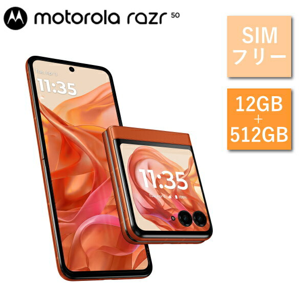 【正規取扱店】motorola razr 50 PB230002JP SIMフリー スマートフォン Android メモリ 12GB ストレージ 512GB 5G 指紋認証 顔認証 防水 IPX8 スマホ 携帯 アンドロイド スプリッツオレンジ SIMフリースマホ moto 本体 モトローラー モトローラ