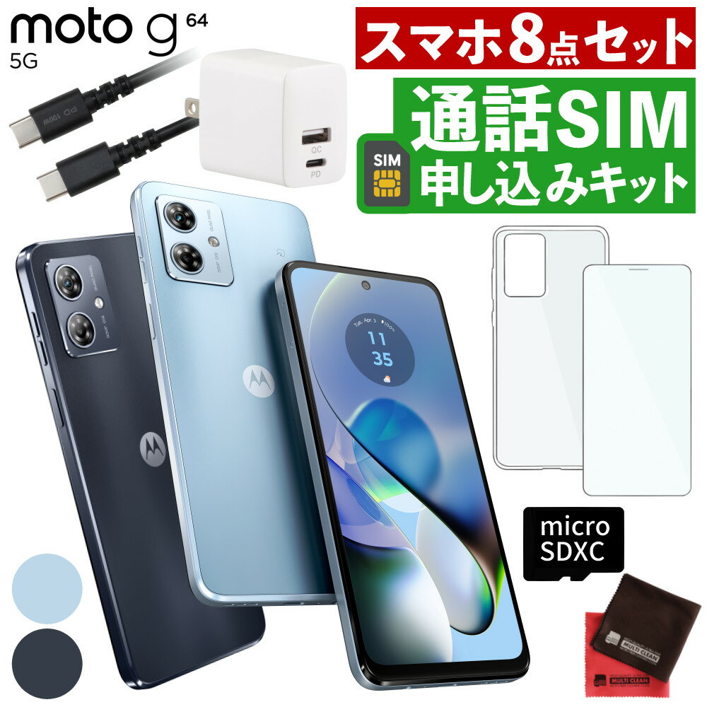 Motorola モトローラ スマートフォン moto g64 5G スペースブラック or シルバーブルー(カラー選択)& モバイルサービスパッケージ & クリアケース & 液晶保護フィルム & microSDXC 128GB & USBケーブル & AC充電器 & クロス(8点セット)PB2G0000JP/PB2G0001JP