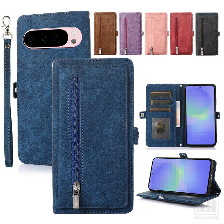 Pixel10 ケース Pixel 10 Pro / Pixel 10 Pro XL 手帳型 カバー 手帳型PUレザーケース スタンド機能 ジッパー付きポケット 便利なカード収納付き ストラップ付き シンプル Google グーグル ピクセル10 ピクセル10 プロ ピクセル10 プロ XL