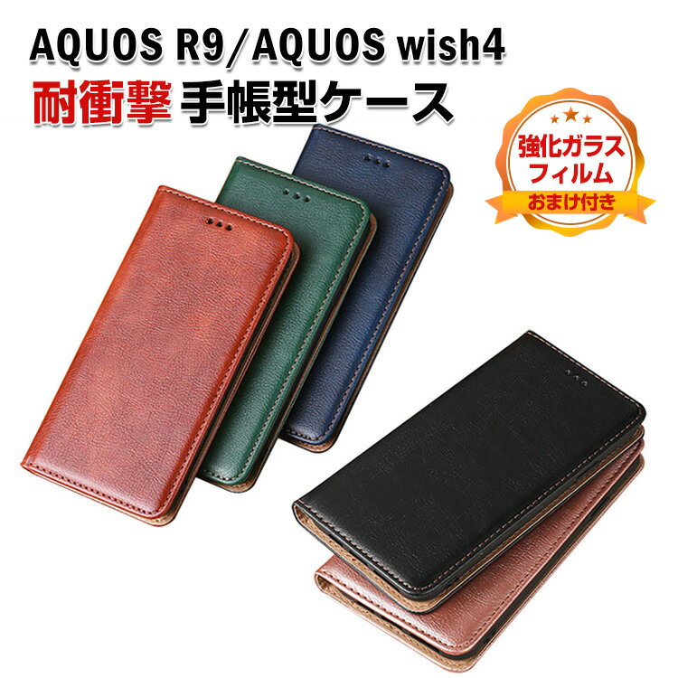 SHARP AQUOS R9 SH-51E AQUOS wish4 SH-52E ケース 耐衝撃 カバー 手帳型 財布型 TPU&PUレザー おすすめ おしゃれ 汚れ防止 スタンド機能 カード収納 便利性の高い 人気 シャープ アクオス R9 ケース 手帳型カバー CASE 強化ガラスフィルム おまけ付き