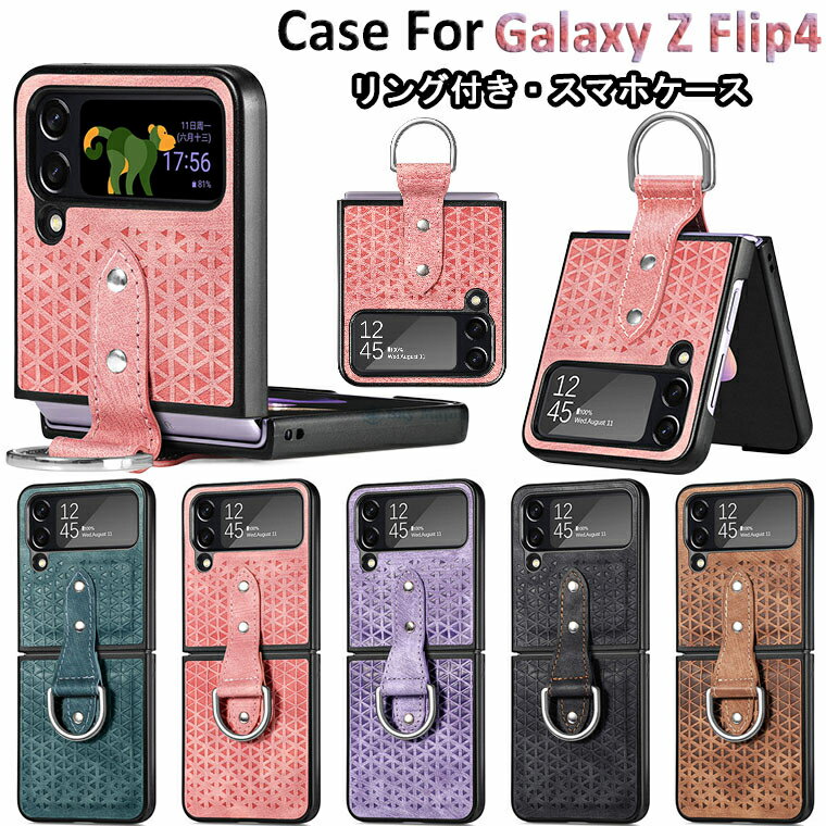 ギャラクシー Samsung Galaxy Z Flip4 5G ケース Galaxy ゼット フリップ 4 ドコモ au ギャラクシーflip4 ギャラクシーZフリップ4 対応 ケース カバー 合成皮革 ハードケース リング リング付き 落下防止 スタンド機能 高品質 PC シンプル おしゃれ 耐衝撃 スマホケース 軽量