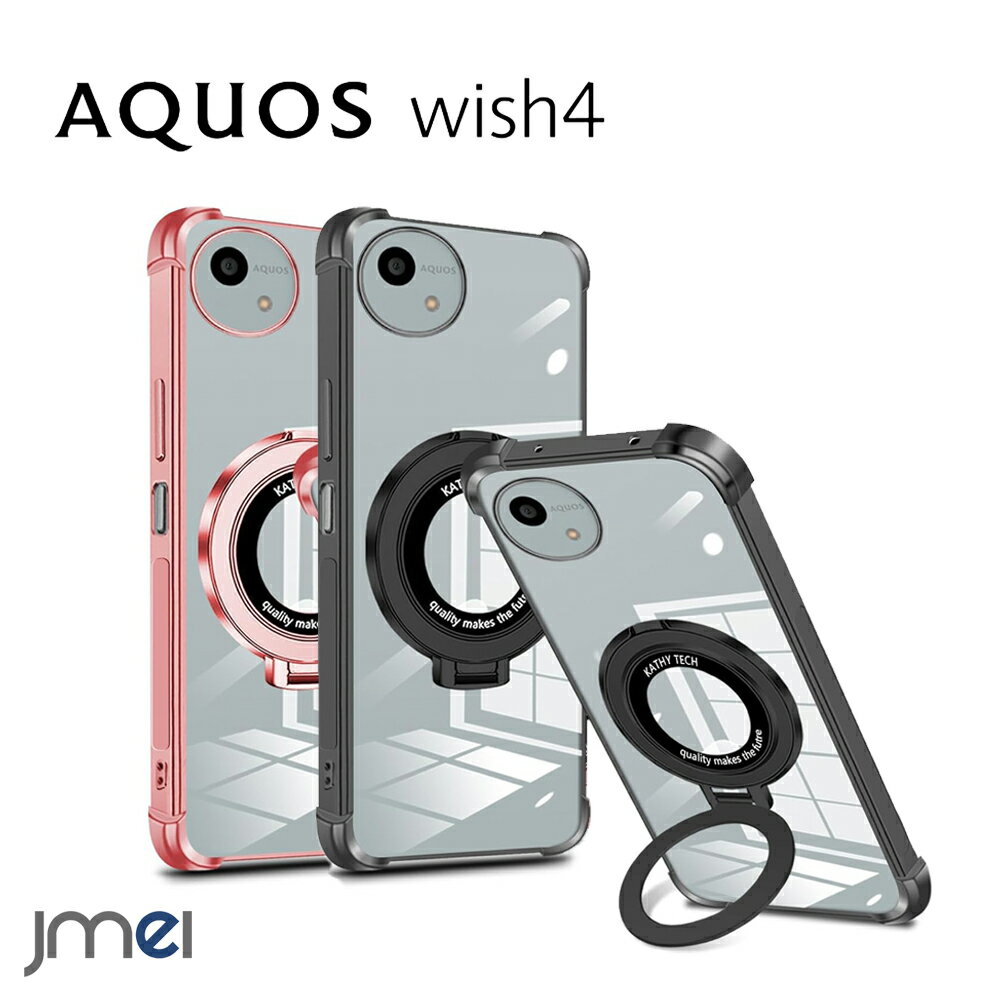 AQUOS Wish4 ケース MagSafe対応 メッキ加工 TPU キックスタンド 耐衝撃 背面クリア SH-52E AQUOS Wish 4 エアクッション マグネット搭載 縦横両対応 車載ホルダー 対応 アクオス ウィッシュ 4 カバー 2024 スマートフォン スマホケース