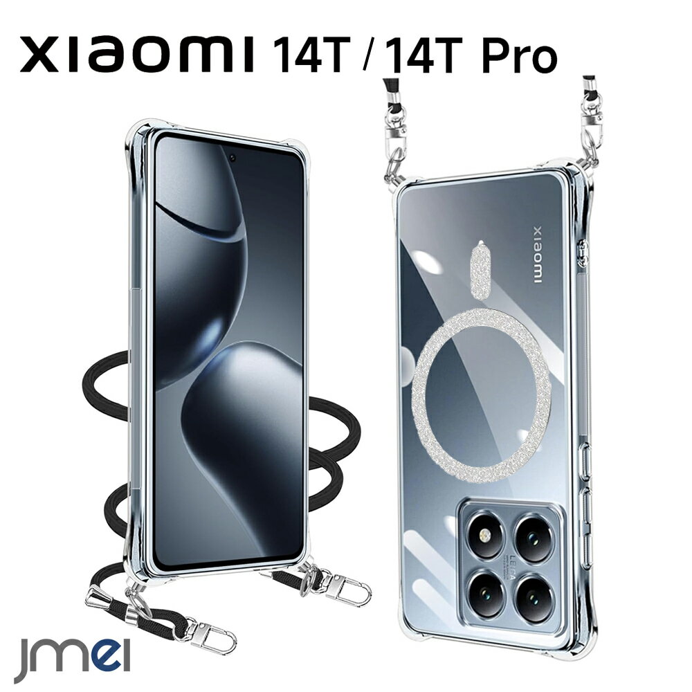 シャオミ 14T プロ ケース ショルダー ストラップ付き MagSafe 対応 リング グリッター クリア 耐衝撃 TPU カメラ保護 Xiaomi 14T ケース 傷つけ防止 スマートフォン ワイヤレス充電 対応 Xiaomi 14T Pro カバー スマホケース 2024 Softbank スマホカバー simフリー