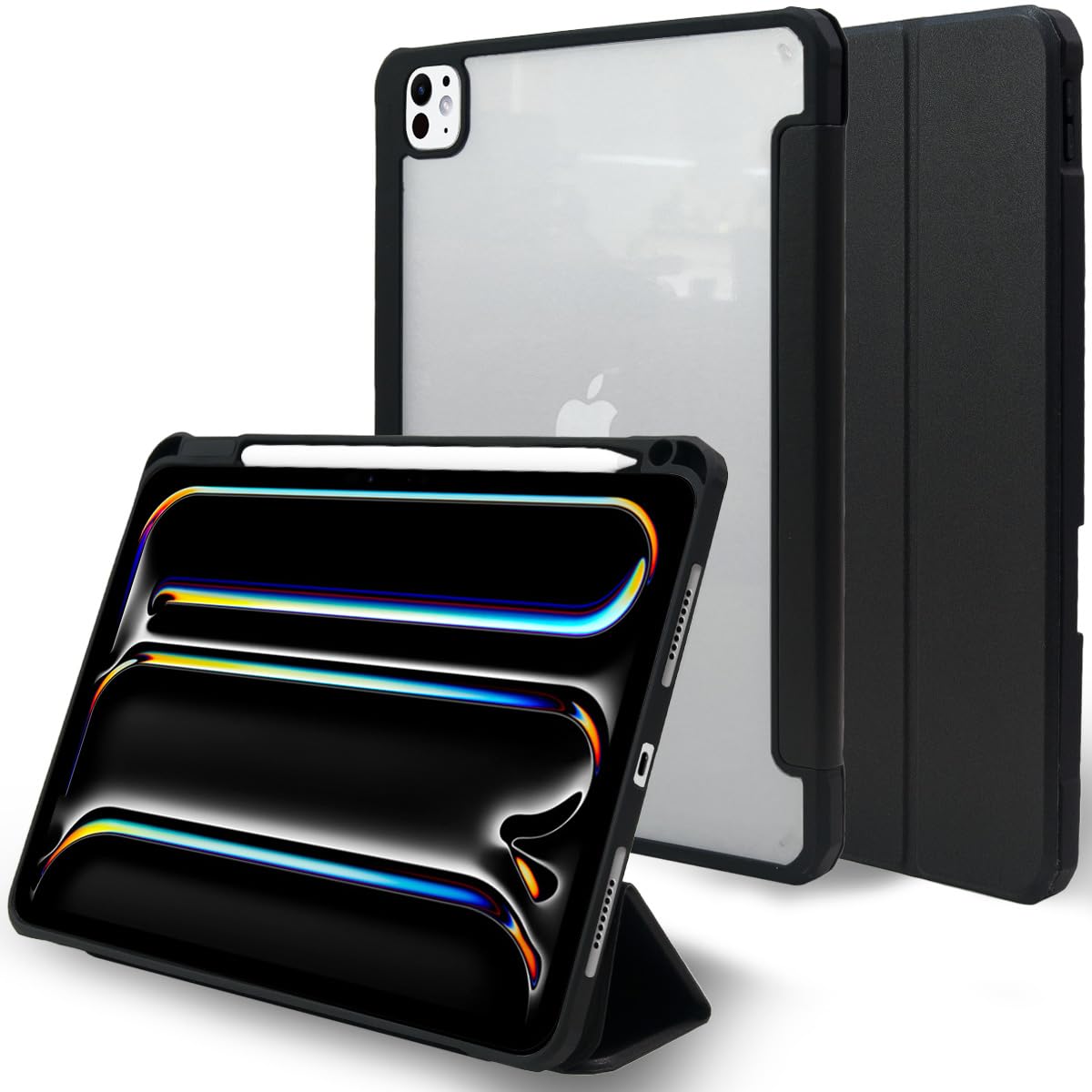 MS factory iPad Pro 11インチ M4 2024 用 ケース 背面透明 ペン収納 耐衝撃 軽量 カバー Pro 11 第5世代 スタンド オートスリープ Apple Pencil Pro 対応 ブラック 黒 IPDP11m4-NO-DET-BK