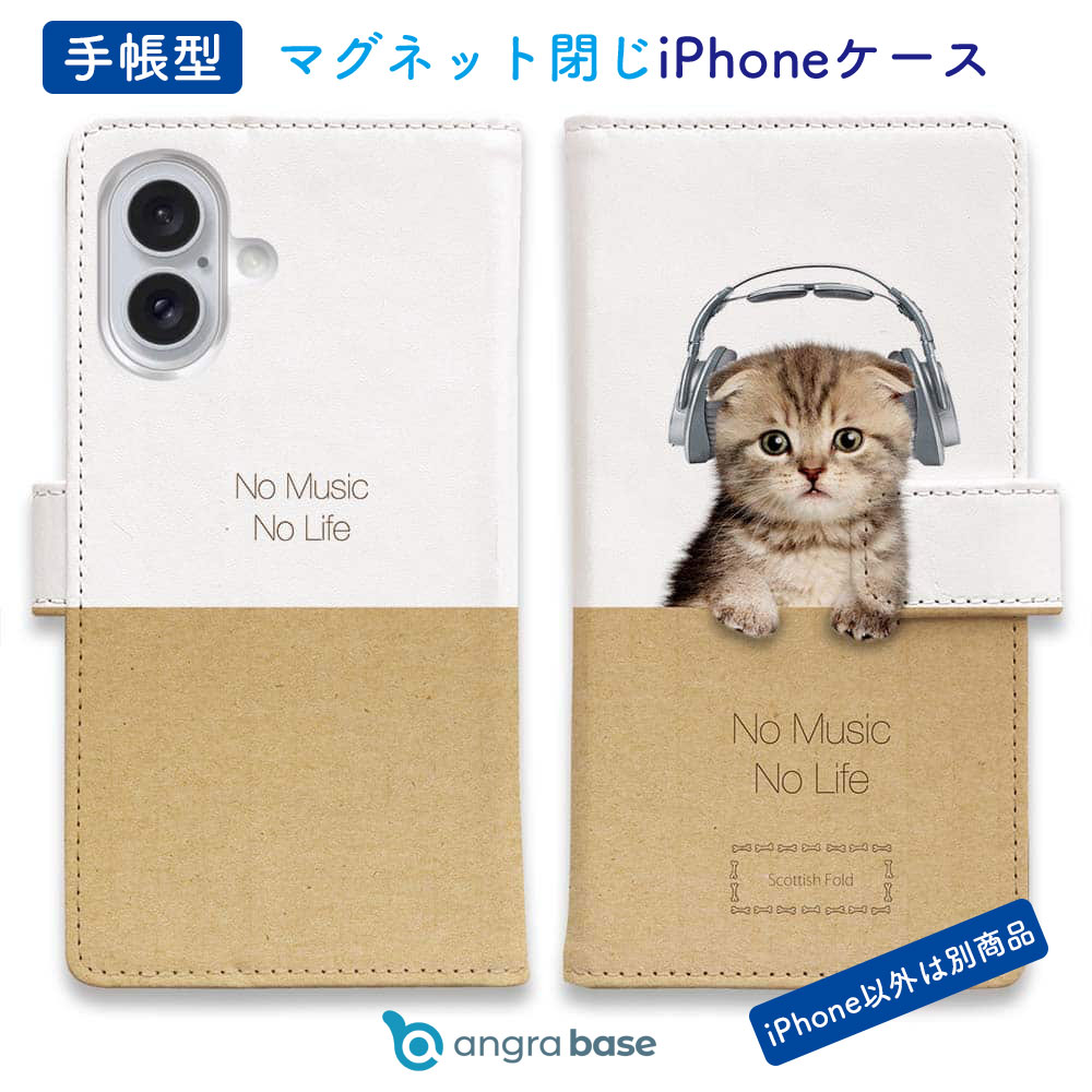 手帳型 スマホケース iPhone17 Pro Max iPhone Air iPhone16e iPhone16 Pro Max 16 Plus ケース iPhone15 Pro Max iPhone15 Plus iPhone SE(第三世代) iPhone14 iPhone13 mini マグネット カード収納 スタンド 猫 ネコ 用品 雑貨 スコだってNo Music No Life