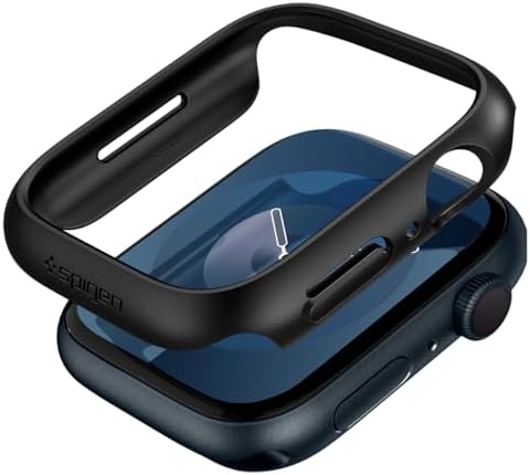 【Spigen】 Apple Watch ケース 45mm 【 Series 9 / 8 / 7 対応 】 落下 衝撃 吸収 簡易着脱 超薄型 シンプル スリム 軽量 保護カバー アップルウォッチケース シン・フィット ACS04174 (ブラック)