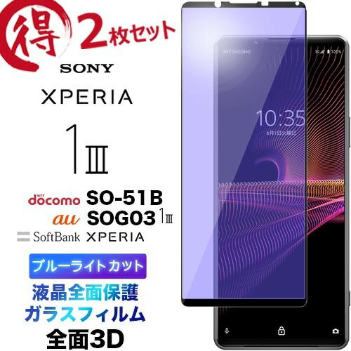 Xperia 1 III SO-51B SOG03 A101so ブルーライトカット 3D ガラスフィルム 2枚セット so51b xperia1iii xperia1 液晶全面保護 液晶保護 画面保護 保護フィルム 強化ガラス 硬度9H クリーナーシート付き ラウンドエッジ エクスペリア ワン マーク スリー 3 フチまで 全面保護