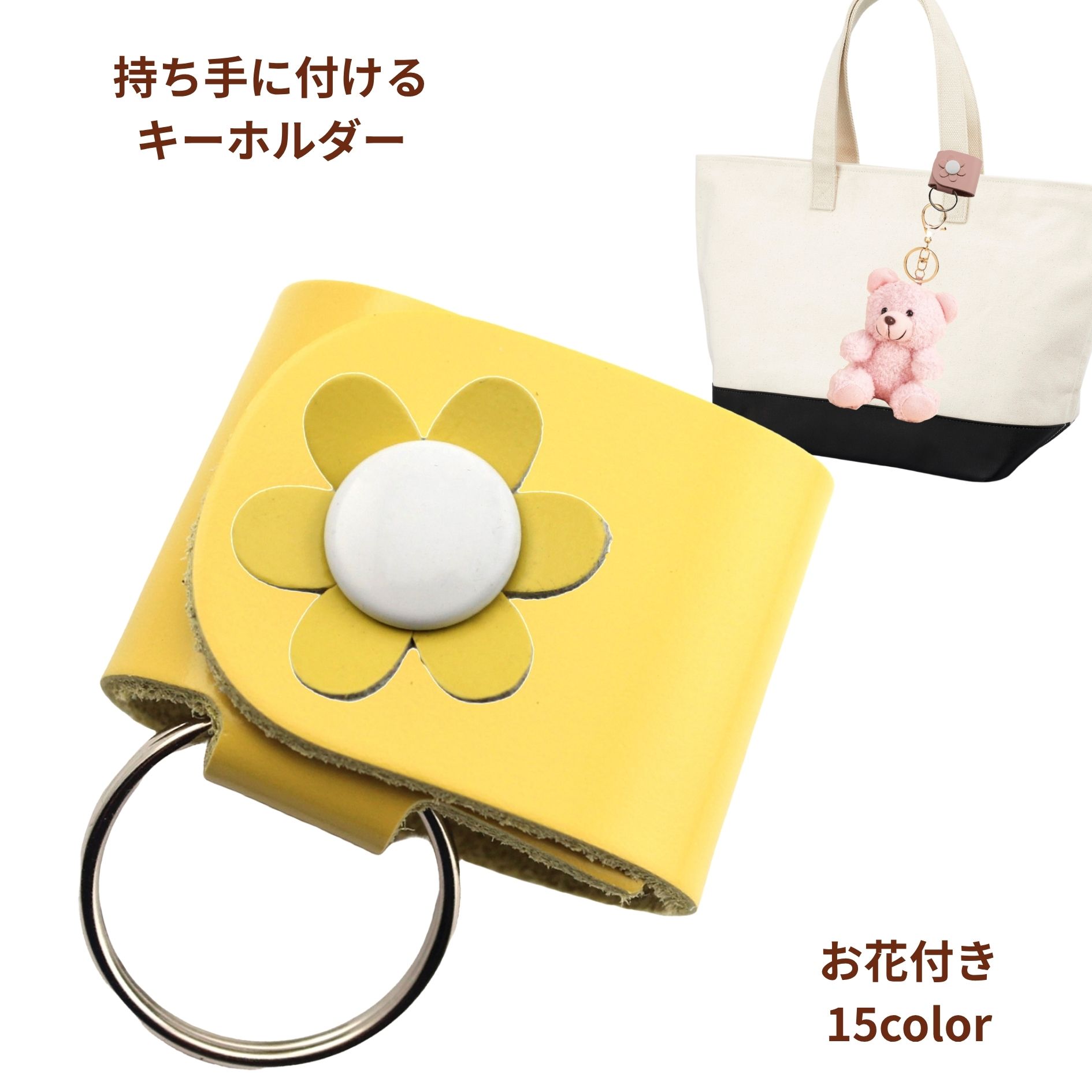 HERBE お花 持ち手 キーホルダー バック ループキーホルダーステーション トートバック用日本製 牛革定形外郵便限定 送料無料