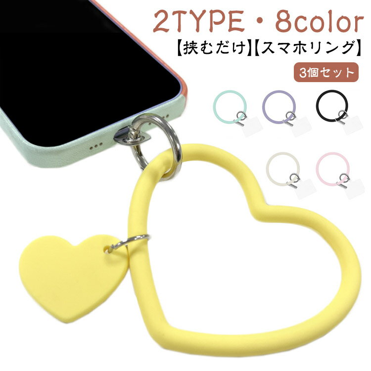 【スマホリング】【3個セット】【挟むだけ】【2TYPE・8color】両手を空けたままスマホの持ち運びができる、便利なリングストラップです。SNS話題のシリコンリング!!スマホケースに挟むだけ!!リング部分を腕に通して落下防止のアイテムとして。軽量で、柔らかいシリコーン製。 豊富なバリエーションの中からお選びいただけます。スマホの他にも鍵やパスケース等、丸カラビナが取り付けられる物であればご活用いただけます。お得な3個セットで、自分用はもちろん、プレゼントにもおすすめです★ サイズ 3個セット サイズについての説明 内径74mm、外径88mm 素材 シリコン 色 ホワイト(丸形) ブラック(丸形) イエロー(丸形) ピンク(丸形) パープル(丸形) グリーン(丸形) ワイン(丸形) ホワイト(ハート型) ブラック(ハート型) イエロー(ハート型) ブルー(ハート型) パープル(ハート型) ダークパープル(ハート型) アイボリー(ハート型) ピンク(ハート型) 備考 ●サイズ詳細等の測り方はスタッフ間で統一、徹底はしておりますが、実寸は商品によって若干の誤差(1cm~3cm )がある場合がございますので、予めご了承ください。 ●製造ロットにより、細部形状の違いや、同色でも色味に多少の誤差が生じます。 ●パッケージは改良のため予告なく仕様を変更する場合があります。 ▼商品の色は、撮影時の光や、お客様のモニターの色具合などにより、実際の商品と異なる場合がございます。あらかじめ、ご了承ください。 ▼生地の特性上、やや匂いが強く感じられるものもございます。数日のご使用や陰干しなどで気になる匂いはほとんど感じられなくなります。 ▼同じ商品でも生産時期により形やサイズ、カラーに多少の誤差が生じる場合もございます。 ▼他店舗でも在庫を共有して販売をしている為、受注後欠品となる場合もございます。予め、ご了承お願い申し上げます。 ▼出荷前に全て検品を行っておりますが、万が一商品に不具合があった場合は、お問い合わせフォームまたはメールよりご連絡頂けます様お願い申し上げます。速やかに対応致しますのでご安心ください。