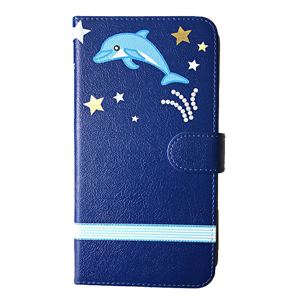 android 手帳型 ケース スマホケ-ス アンドロイド スマホケース かわいい 可愛い おしゃれ メンズ レディース オリジナル イラスト いるか イルカ かわいい カードホルダー付き