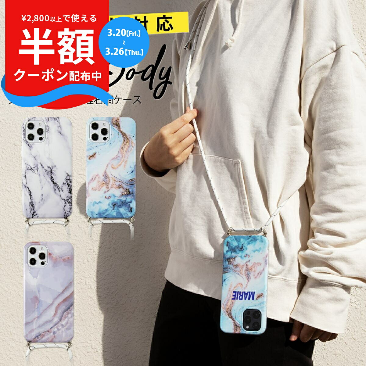 商品名称iPhone12mini iPhone 12 iPhone 12Pro iPhone12ProMax iPhone11 iPhone11Pro iPhone11ProMax iPhone7/8/se2 iPhone X/Xs 名入れ対応 大理石調ショルダー型ストラップケース適応機種iPhone12mini iPhone12 iPhone 12Pro iPhone12ProMax iPhone11 iPhone11Pro iPhone11ProMax iPhone7iPhone8iPhoneSE(第2世代)iPhoneSE(第3世代) iPhoneX iPhoneXsカラーホワイトブルーグレー商品説明あなたの両手を煩わしさから開放。必要な瞬間、すぐそばに。地図、カメラ、IC改札などアウトドアはもちろん、キャッシュレスのお買い物などスマホを活用するシーンが多いからこそ、とっても便利なクロスボディ型のケースです。ストラップは紐を引くだけで簡単に調節できるので場面に応じて素早く長さが変えられます。リアルな大理石柄とグロス加工でラグジュアリーに。あなたのオリジナリティをプラスして。のでプレゼントにもぴったりです。もちろん、プリントせずにご注文も可能です。●付属ベルトの長さは無段階調節式(約170cmまで調節可)●ソフトケースで簡単装着●メール便出荷となります。楽天Pay払い/クレジットカード/後払い決済などの決済は送料無料代引きは別途代引き手数料と宅急便送料がかかります。スマホショルダー 名入れ 名前入れケース イニシャルケース カスタマイズ 海外 海外風 人気 個性的 派手 派手柄 派手カワ おしゃれ メンズ プリント オリジナル インスタ 大人 大人可愛い 大人かわいい 大人女子 ブランド ソフトケース インパクト インパクトケース 耐衝撃 耐衝撃ケース レディース 韓国 大人 可愛い オシャレ スマホケース 肩掛け スマホケース ショルダー ママ スマホケース ショルダー タイプ スマホ 斜めがけ ストラップ ストラップ付き トレンド 手ぶら女子 流行 手ぶら 携帯ケース 推し活商品名称iPhone12mini iPhone 12 iPhone 12Pro iPhone12ProMax iPhone11 iPhone11Pro iPhone11ProMax iPhone7/8/se2 iPhone X/Xs 名入れ対応 大理石調ショルダー型ストラップケース適応機種iPhone12mini iPhone12 iPhone 12Pro iPhone12ProMax iPhone11 iPhone11Pro iPhone11ProMax iPhone7iPhone8iPhoneSE(第2世代)iPhoneSE(第3世代) iPhoneX iPhoneXsカラーホワイトブルーグレー商品説明あなたの両手を煩わしさから開放。必要な瞬間、すぐそばに。地図、カメラ、IC改札などアウトドアはもちろん、キャッシュレスのお買い物などスマホを活用するシーンが多いからこそ、とっても便利なクロスボディ型のケースです。ストラップは紐を引くだけで簡単に調節できるので場面に応じて素早く長さが変えられます。リアルな大理石柄とグロス加工でラグジュアリーに。あなたのオリジナリティをプラスして。のでプレゼントにもぴったりです。もちろん、プリントせずにご注文も可能です。●付属ベルトの長さは無段階調節式(約170cmまで調節可)●ソフトケースで簡単装着