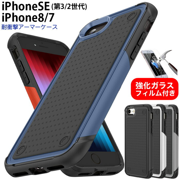 全てのケースにガラスフィルムを同梱しています。予備用としてもご検討下さい。ケースと同時購入でフィルムがお得に購入可能! 【高品質】強化ガラス2枚セット:1,280円ブルーライトカット タイプ:1,580円覗き見防止タイプ:1,780円強化ガラス3枚セット:1,220円対応機種iPhoneSE3/SE2(第3世代/第2世代)iPhone8/7商品説明強固でスタイリッシュなハイブリッドケースです。 このケースは、PC(ポリカーボネート)とTPUの組み合わせにより耐衝撃性能に優れています。 硬質なPCと肉厚なTPUの組み合わせにより、ケース自体が頑丈に作られています。落下や衝撃からiPhoneをしっかりと守り、ケース自体も傷に強く、綺麗な状態を保ちます。 ハイブリッドによる個性的なデザイン、押しやすい各種ボタン、サイドのバンパー部分はマイクロドット仕様の凹凸により滑りにくくなっているなど、細部まで作り込まれています。 カメラのレンズや画面よりもケースが高くなっているため、iPhoneをテーブルや他の平らな面に置いた際に直接レンズや画面が触れる心配はありません。 重厚なケースなので、アウトドアや旅行などのアクティブなシーン、または傷が付きやすいお子様用ケースとしても活躍します。 ※ケースにストラップホールは付いておりません。【iPhoneSE3/SE2/8/7用ケース】注意事項★商品の形状・色・素材感は、実際のものと若干の誤差が生じる事がございます予めご了承ください。▼ケースと合わせてご検討下さい! New ! 強固なボディでiPhoneを守る肉厚ケース。 ※ケースのみの重量は56.8g Black(ブラック) Gyay(グレー) Blue(ブルー) White(ホワイト) Red(レッド) Pink(ピンク)/WineRed(ワインレッド) Lavender(ラベンダー)/Navy(ネイビー) 対応サイズ ・iPhoneSE(第3世代):4.7インチ ・iPhoneSE(第2世代):4.7インチ ・iPhone8:4.7インチ ・iPhone7:4.7インチ ※インチはディスプレイサイズ ※端末本体のサイズは縦約13.84cm/横約6.73cm →「商品ページはこちら」← 《その他の同時購入限定フィルム》 → ブルーライトカットタイプはこちら ← ※+699円:iPhone14/13/SE3/SE2/8/7用のみ → 覗き見防止タイプはこちら ← ※+799円:iPhone14/13/SE3/SE2/8/7用のみ