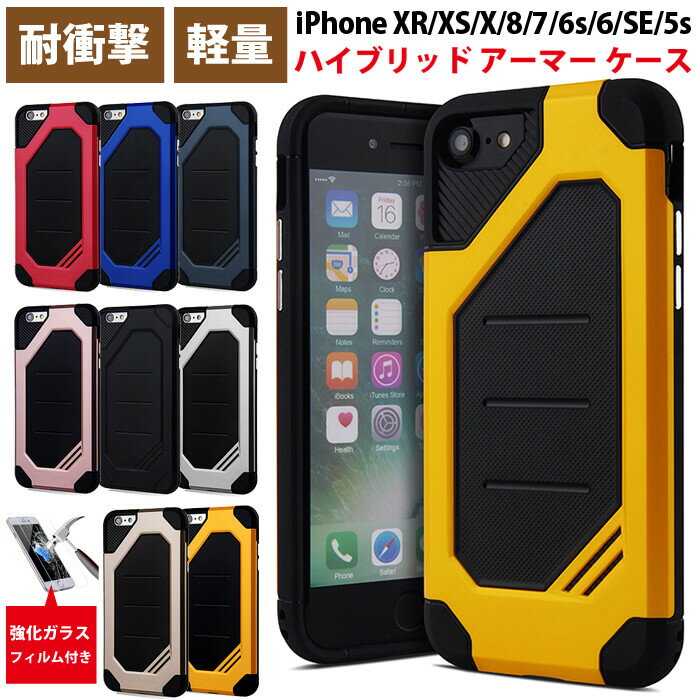 全てのケースにガラスフィルムを同梱しています。予備用としてもご検討下さい。ケースと同時購入でフィルムがお得に購入可能! 【高品質】強化ガラス2枚セット:1,280円ブルーライトカット タイプ:1,580円覗き見防止タイプ:1,780円強化ガラス3枚セット:1,220円対応機種iPhoneXRiPhoneXS/XiPhoneSE3/SE2(第3世代/第2世代)iPhone8/7iPhone6s/6iPhone5s商品説明強固でスタイリッシュなハイブリッドケースです。 このケースは、PC(ポリカーボネート)とTPUの組み合わせにより耐衝撃性能に優れています。 硬質なPCと肉厚なTPUの組み合わせにより、ケース自体が頑丈に作られています。落下や衝撃からiPhoneをしっかりと守り、ケース自体も傷に強く、綺麗な状態を保ちます。 【iPhoneXR/XS/X/SE3/SE2/8/7/6s/5s用ケース】注意事項★商品の形状・色・素材感は、実際のものと若干の誤差が生じる事がございます予めご了承ください。更に進化したハイブリッドケースはこちら! →「商品ページはこちら」← 《その他の同時購入限定フィルム》 → ブルーライトカットタイプはこちら ← ※+699円:iPhone14/13/SE3/SE2/8/7用のみ → 覗き見防止タイプはこちら ← ※+799円:iPhone14/13/SE3/SE2/8/7用のみ