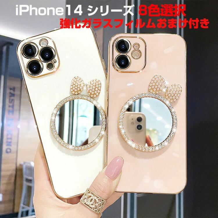 アップル アイフォン iPhone 14 14 Plus 14 Pro 14 Pro Maxケース シリコン素材 おしゃれ メッキ仕上げ ミラー収納 蝶々結び CASE 耐衝撃 衝撃防止 綺麗な 鮮やかな 高級感があふれ おし カラフル 可愛い 便利 実用 人気 ケース 背面カバー フィルム おまけ付き