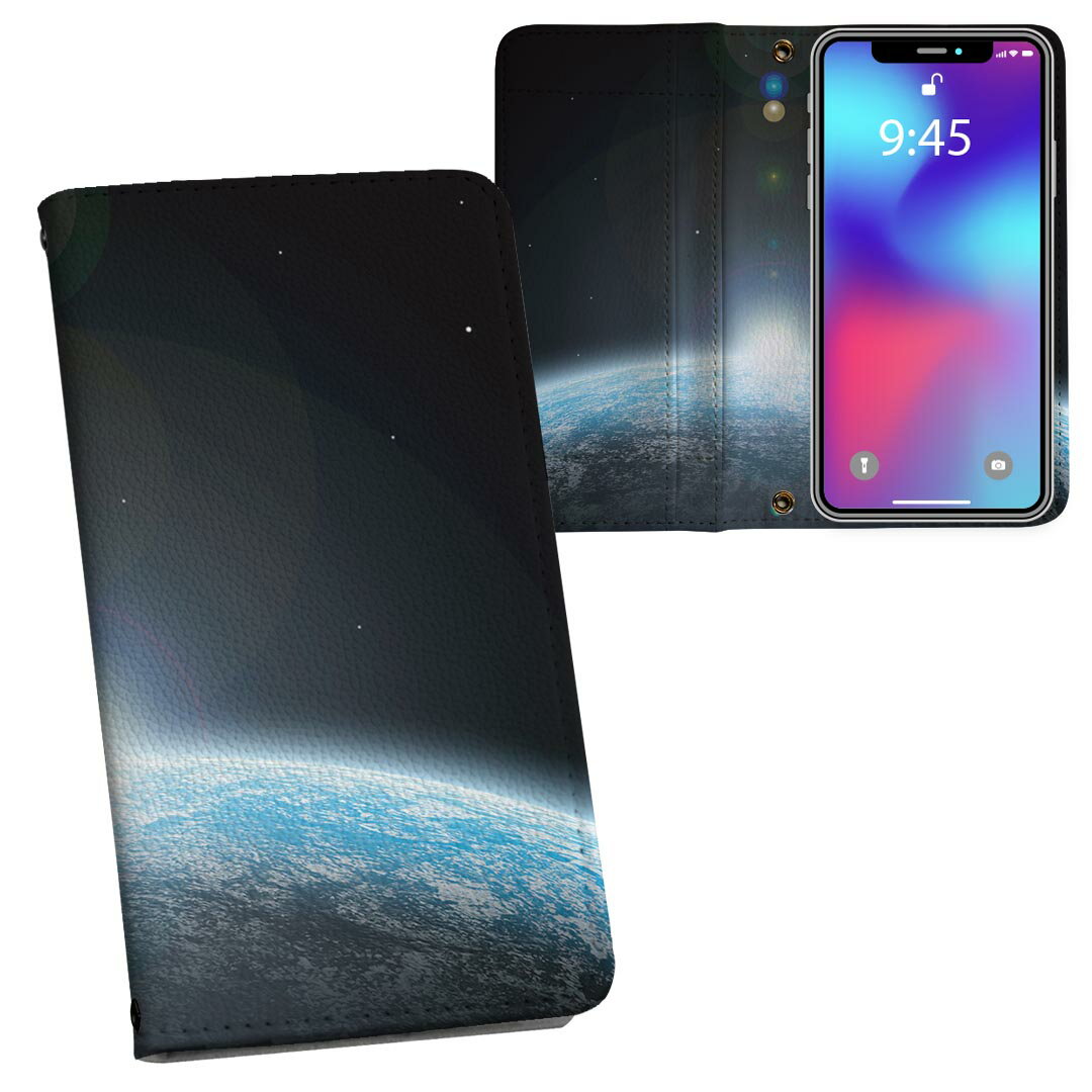 iPhone17 用 内側プリント ケース カバー 手帳型 マグネット式 ピタッと閉まる レザーケース カード収納 ポケット 003267 宇宙 地球 写真