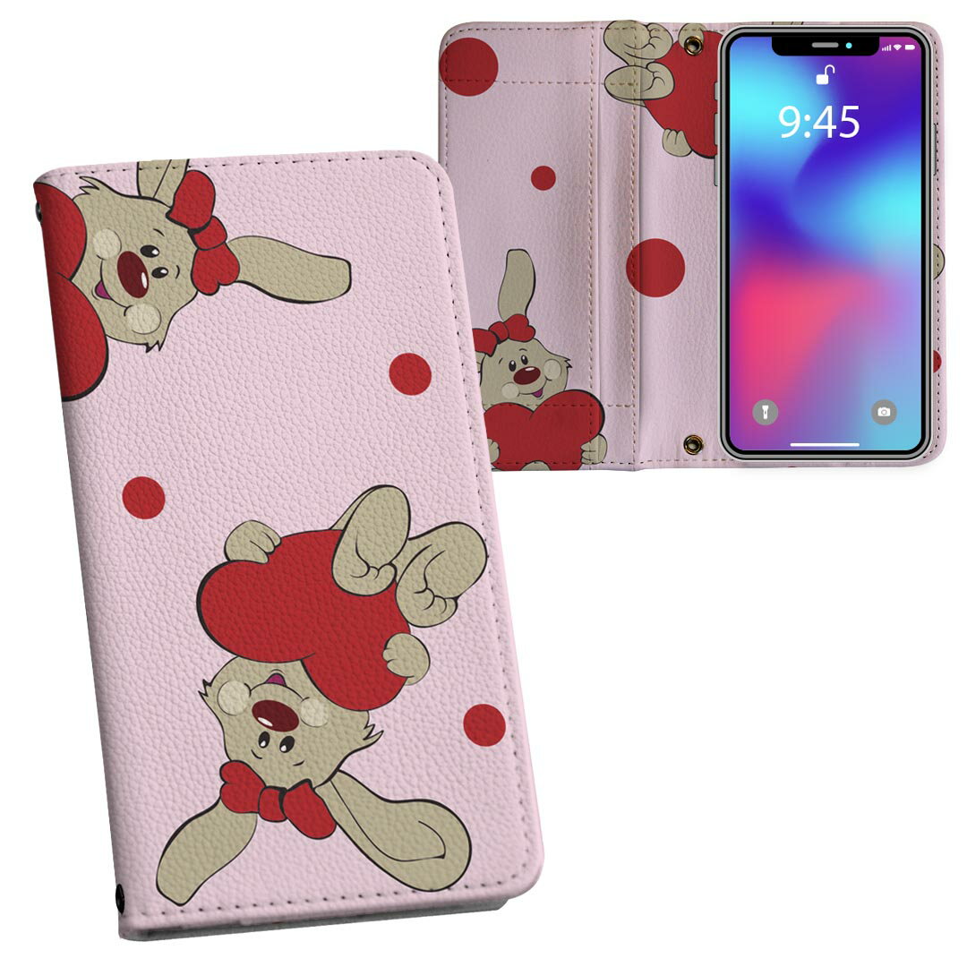 iPhone17 用 内側プリント ケース カバー 手帳型 マグネット式 ピタッと閉まる レザーケース カード収納 ポケット 003738 うさぎ 動物 キャラクター