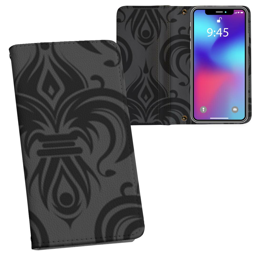 iPhone17 用 内側プリント ケース カバー 手帳型 マグネット式 ピタッと閉まる レザーケース カード収納 ポケット 003793 模様 エレガント 黒