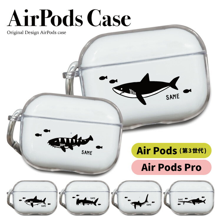 AirPodsProカバー AirPodsカバー エアーポッズプロ エアーポッズ ケース AirPodsProケース エアポッズプロ かわいい 透明 クリア 第3世代 保護ケース 透明ケース カラビナ クリアケース サメ ジンベイザメ ホオジロザメ 海 夏 かわいい