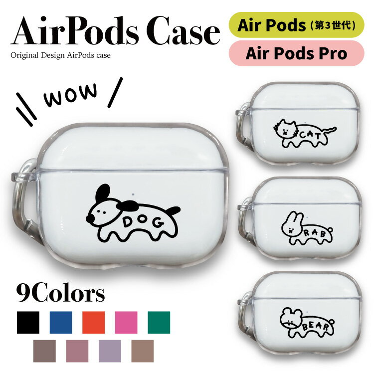 AirPodsProカバー AirPodsカバー エアーポッズプロ エアーポッズ ケース AirPodsProケース エアポッズプロ かわいい 透明 クリア 第3世代 保護ケース 透明ケース カラビナ クリアケース 兎 猫 犬 熊 イラスト カラフル アニマル ゆるい