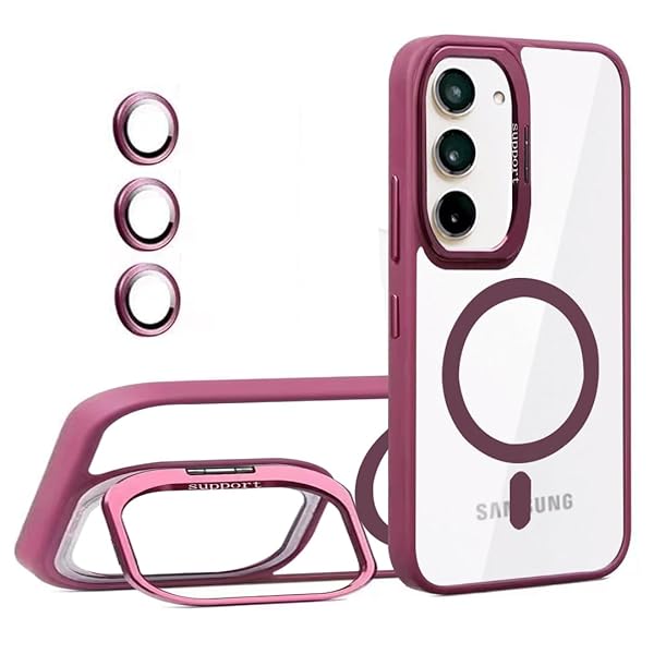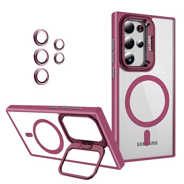 Galaxy24+ 24Plus用のケース MagSafe対応 レンズ保護 スタンド自由に切替 ワイヤレス充電 耐衝撃 黄ばみなし ストラップホール付き ウインドウシリーズ 6.6 (LKJT-24p-jiuhong)