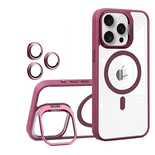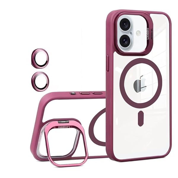 Iphone16Plus用のケース MagSafe対応 レンズ保護 スタンド自由に切替 ワイヤレス充電 耐衝撃 黄ばみなし ストラップホール付き ウインドウシリーズ 6.7 (LKJT-16p-jiuhong)