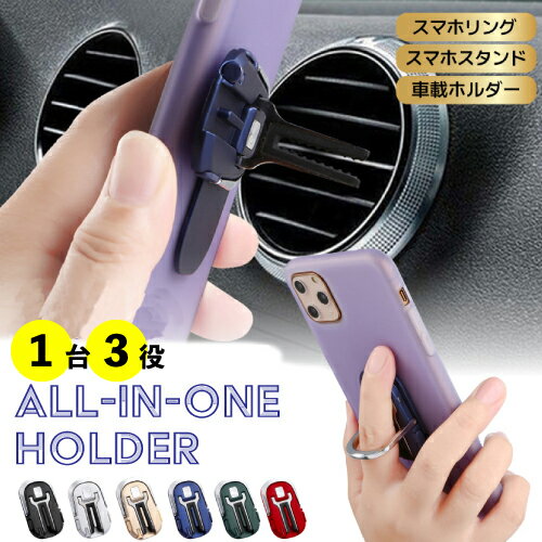 ポイント5倍スマホリング スマホスタンド 車載用ホルダー 360°回転 リングホルダー 車載 エアコン吹き出し口 フィン 装着 視聴スタンド 車 動画視聴 ナビ 薄型 卓上 折畳 落下防止 多機能 おしゃれ sim取出しピン ライトニング Type-c充電口カバー付