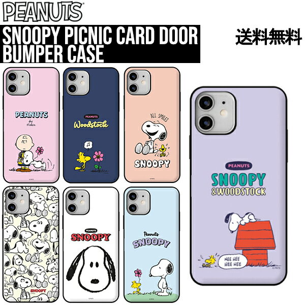 Snoopy Picnic Card Door Bumper Case【送料無料】PEANUTS ピーナッツ スヌーピー iPhoneケース 背面 カード収納 ミラー付き 可愛い キャラクター スマホケース スマホカバー アイフォンケース 耐衝撃 薄型 かわいい 携帯カバー 落下防止 鏡 便利 収納 保護 ケース カバー