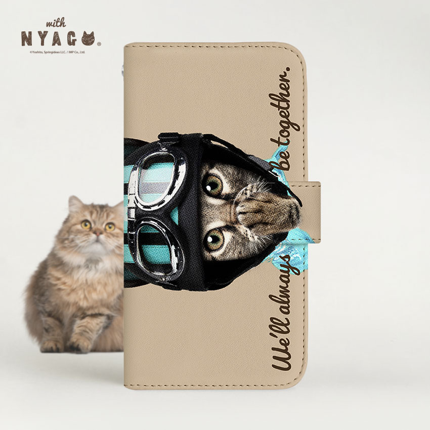 スマホケース 猫 手帳型 全機種対応 厚手 【 ライダーブルー ソラちゃん 肉球をペロペロするにゃー。キャメル 】【with NYAGO】 iPhoneケース スマホショルダー ネコ柄 スマホケース 猫 柄 iPhone14 スマホケース 猫 可愛い 猫雑貨 肉球 プレゼント
