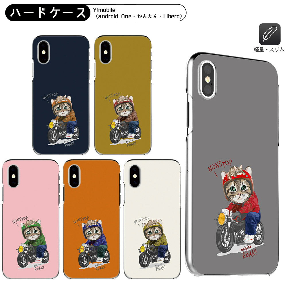 かんたんスマホ4 A205KC ハードケース リベロ 5G フォーA302ZT バイク猫 かんたんスマホ3 a205kc ねこ ライダー 全機種Libero S10 スマホケース One S9 多機種 Android One 507SH One 507SHケース スマホカバー One X1