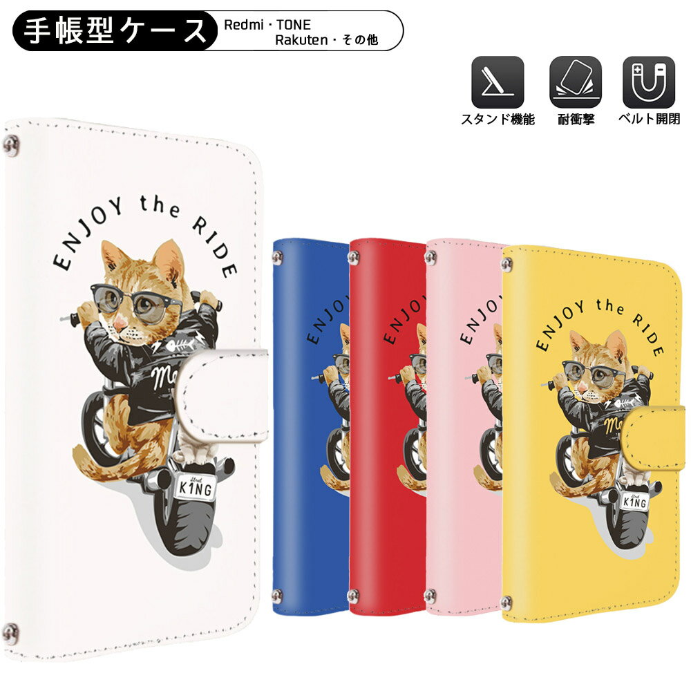 Redmi Note 13 Pro 5G スマホケース Redmi Note 10 JE 猫ライダー Xiomi 12T Pro キャット バイク パロディ 手帳型 Redmi Note 9S 全機種カード収納 Xiaomi 13Tミラー付きRakuten BIG s 多機種Xiaomi Mi 11 Lite 5G